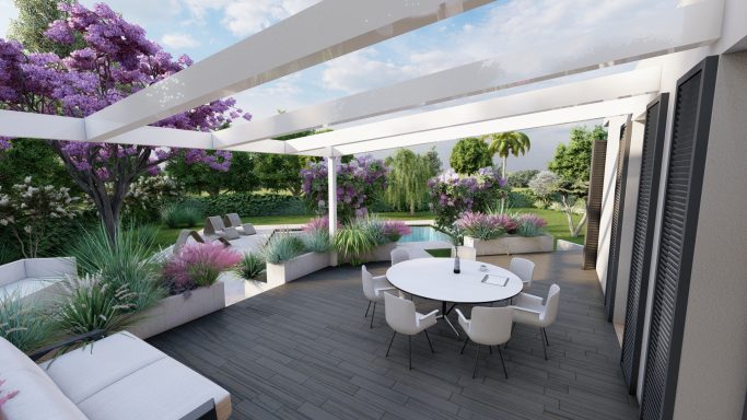 Il Progetto Villa e Giardino rappresenta una ristrutturazione ambiziosa di una villa di 300 mq, realizzata nello stile industriale accogliente. L'intervento comprende il recupero del sottotetto, trasformandolo in uno spazio funzionale e di design. L'ampio giardino, progettato con cura, è arricchito da una piscina privata e una zona relax, ideale per momenti di svago all'aperto. Inoltre, il terrazzo rialzato è dotato di una pergola bioclimatica, che offre una piacevole estensione del soggiorno e permette di godere del verde circostante in ogni stagione. Questo progetto non solo valorizza l'architettura della villa, ma crea anche un ambiente armonioso e confortevole, perfetto per vivere e trascorrere il tempo libero.