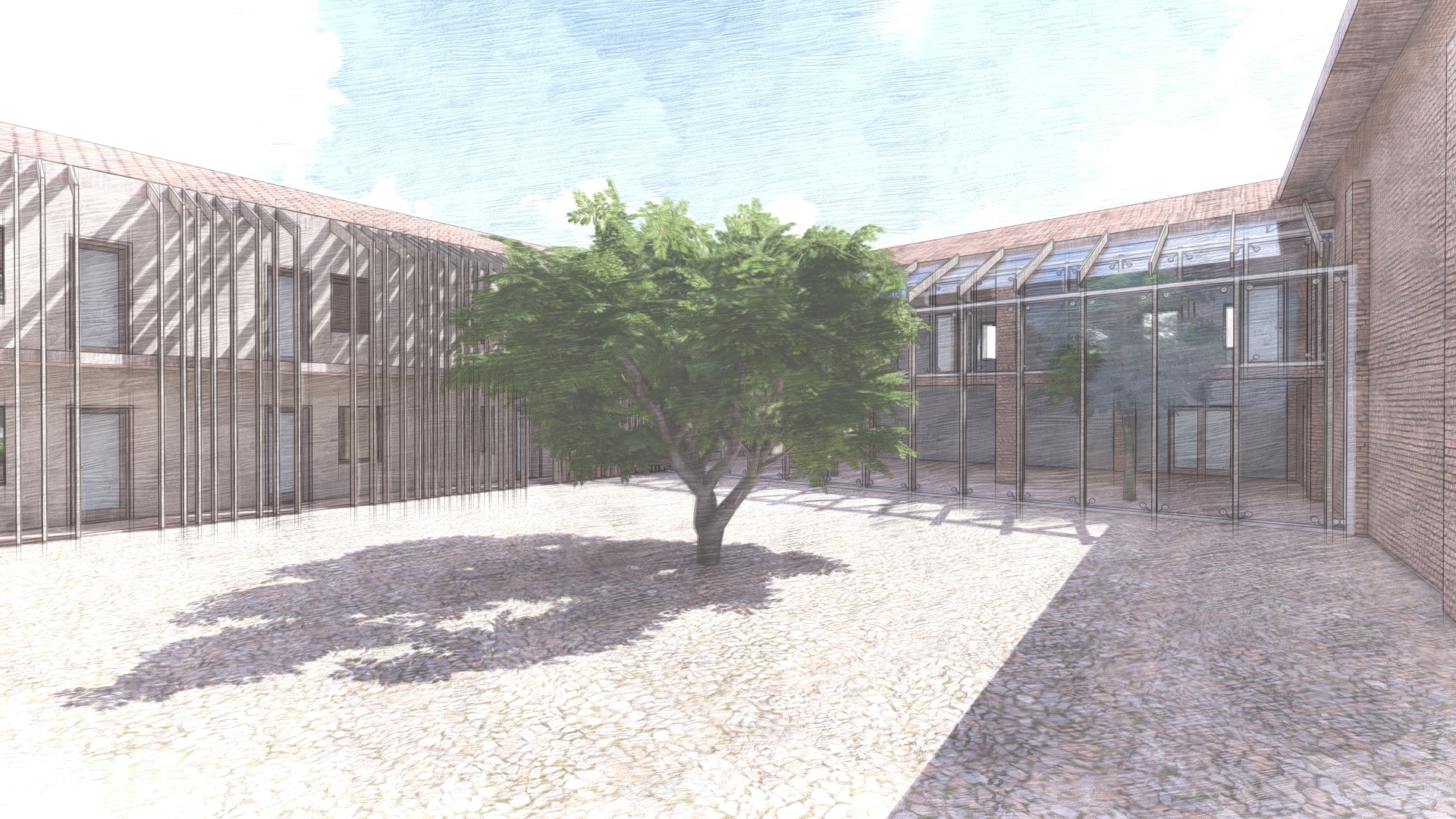 Ha come obiettivo la rigenerazione del complesso, preservandone la struttura esistente e mantenendo l’impostazione architettonica tipica delle cascine storiche lombarde. Verranno valorizzati il contesto paesaggistico e la parte verde del lotto. Il cortile interno sarà organizzato come spazio esclusivamente pedonale.
